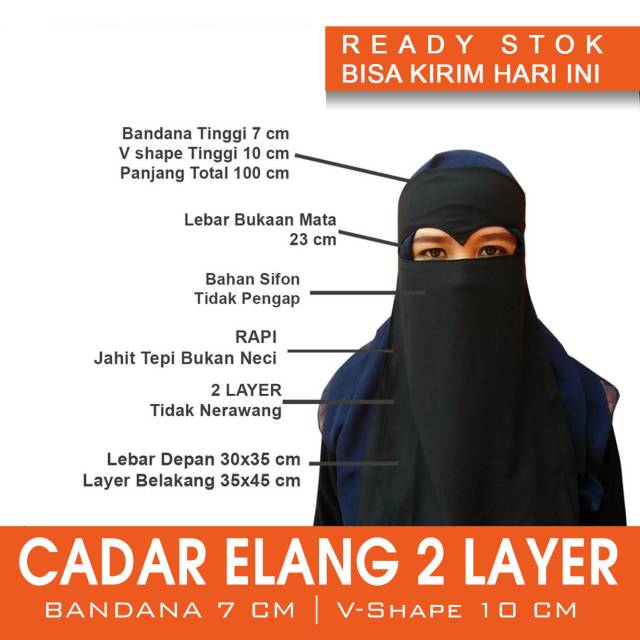 Niqob atau cadar sudah tidak asing lagi bagi para muslimah. Siapkan kain lipat jadi dua. Cadar bandana tersedia dengan berbagai macam bahan dan warna dibawah ini adalah contoh warna yang pernah di produksi yaitu warna dusty pinkbiru dongker.