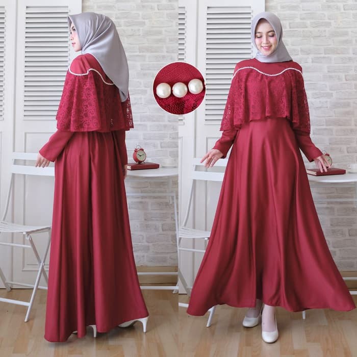 Jual Baju Gamis Syari Busui Brokat Brukat Nabila Warna Merah Maron