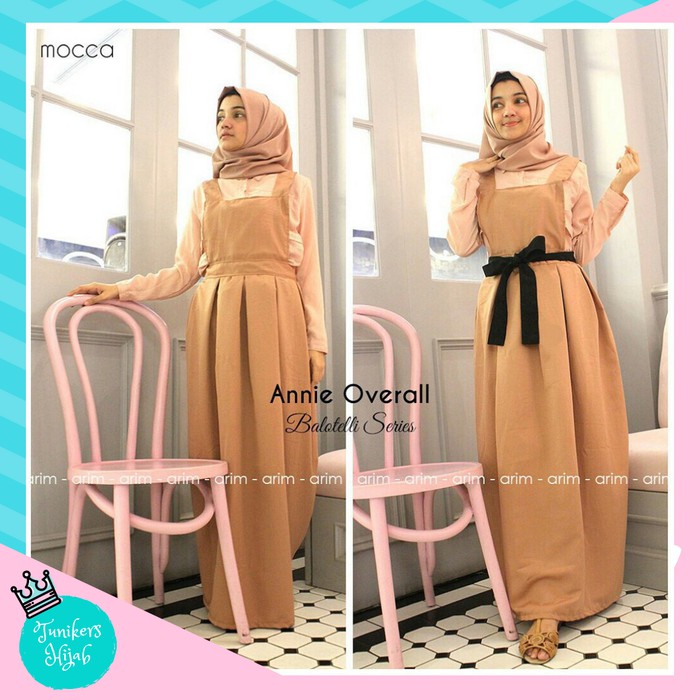 Jual Baju Terusan Wanita Muslim Overall Serena Jumpsuit Woolpeach