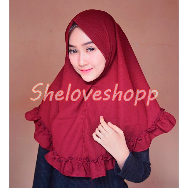 Khimar Pet Kombi 2 Tone Yara Instan Kombinasi Ruffle Rempel Susun